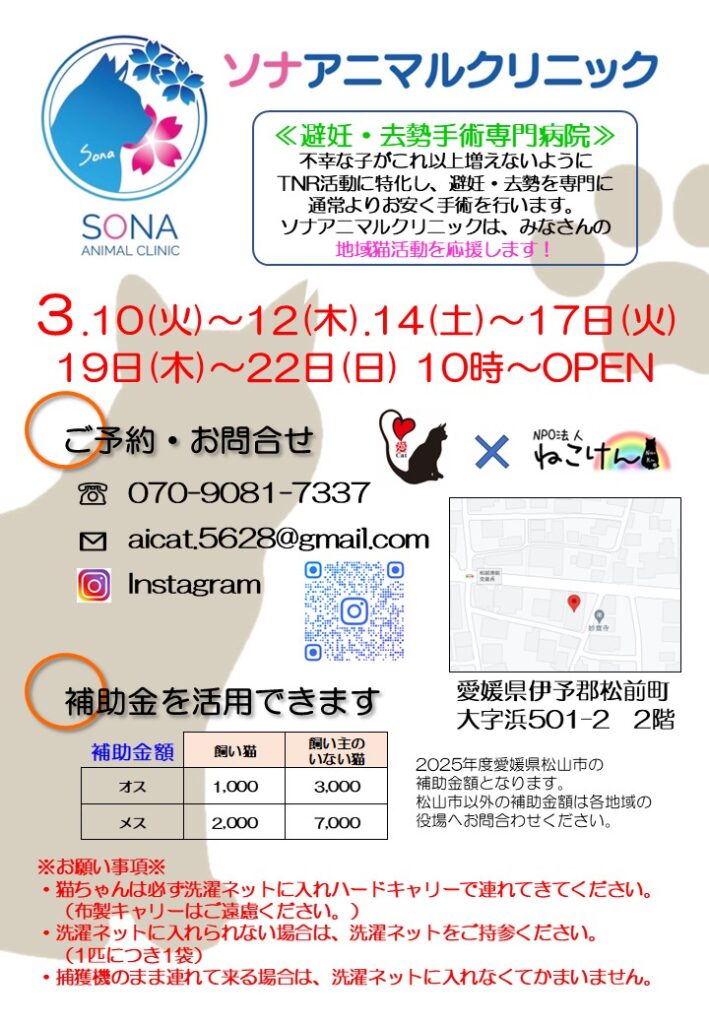 ソナアニマルクリニック開院日のお知らせ