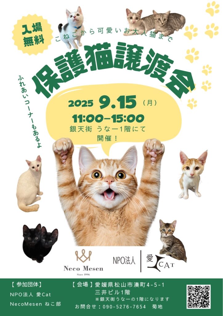 三井ビル1F(松山市港町4-5-1)にて譲渡会を開催します。