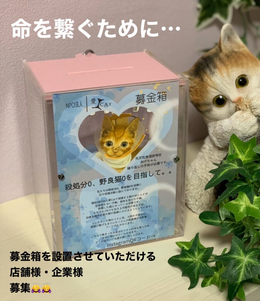 現在、活動を応援してくださる店舗様・企業様に募金箱の設置協力をお願いしております。